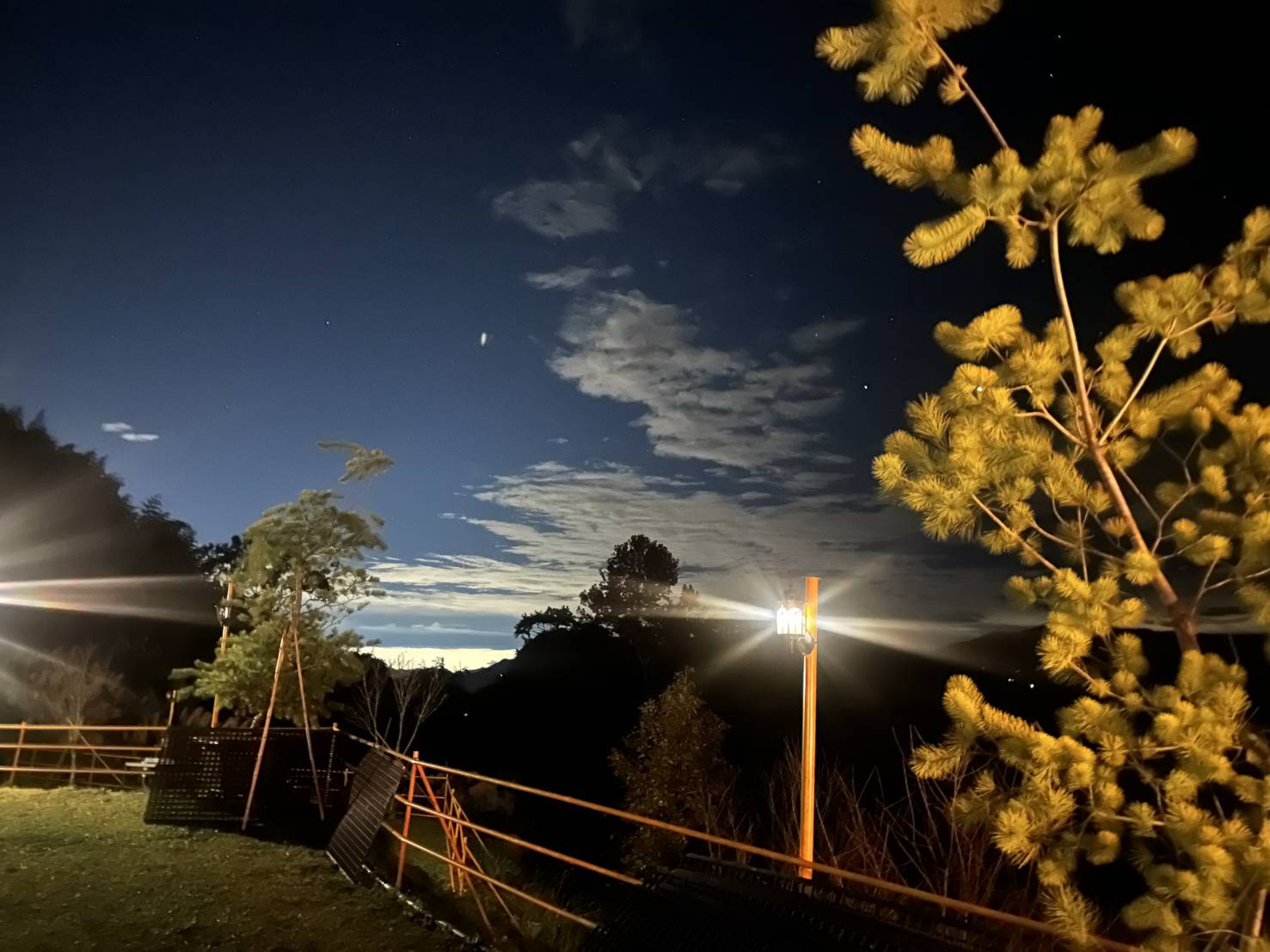 夜晚燈光點亮營地小徑,抬頭便是滿天星斗,